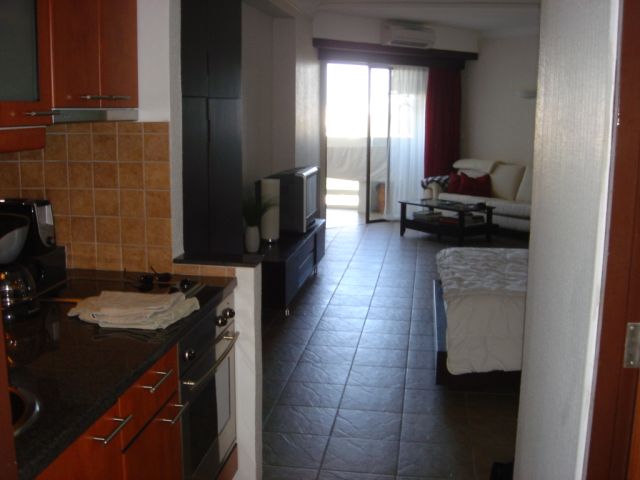 Fully furnished kitchen, refrigerator, oven, television, air conditioner.
